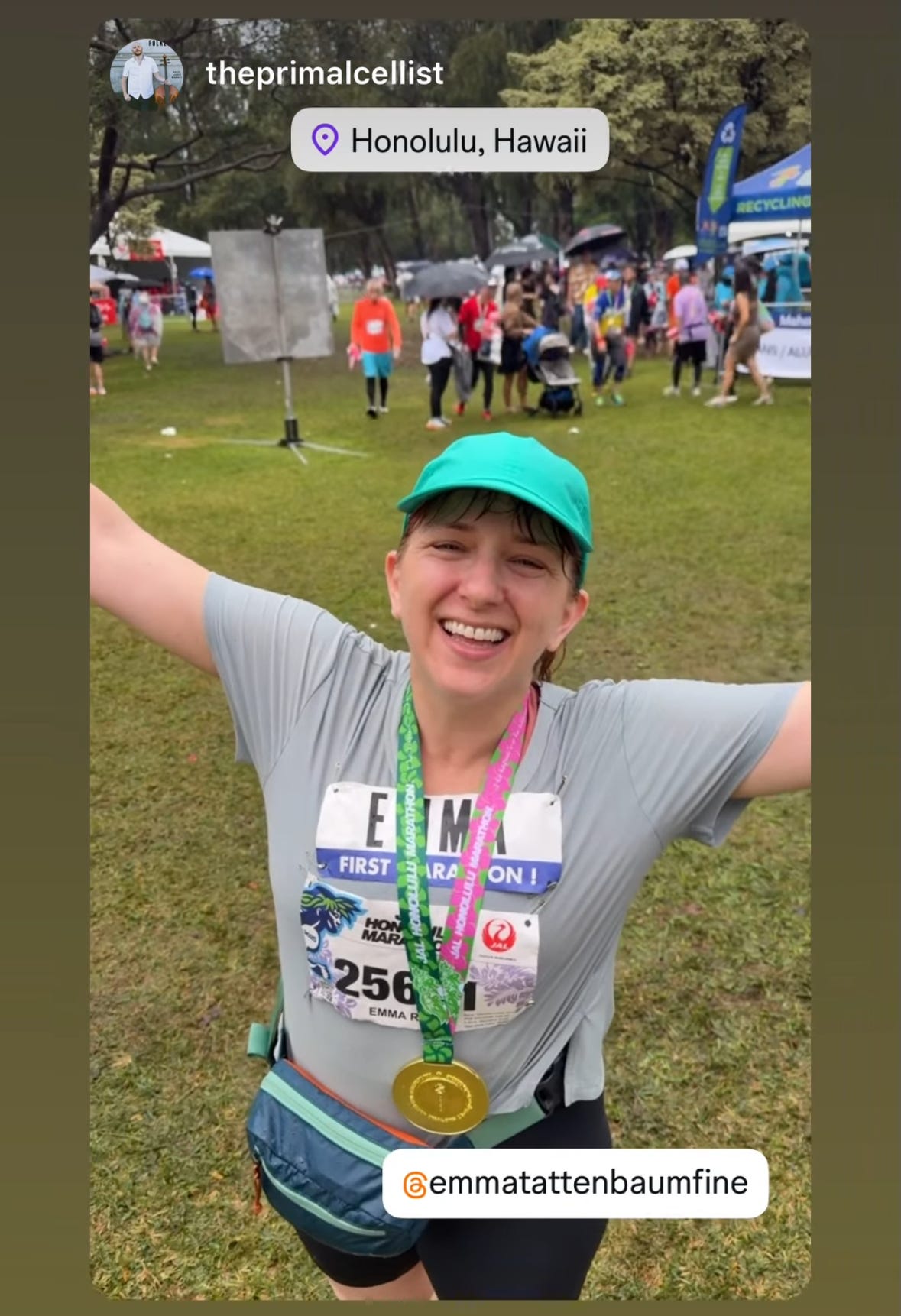 My practice marathon (my 6th one since 2020, but my first time jogging it) was slow and my Honolulu time (7th marathon distance, 2nd time jogging all the way) was slower, with the torrential downpours, direct sun, and winding around crowds of walkers, but nonetheless, I exceeded my main goal, which was to get to the start line with no training-related injuries (nor a cold) on race day.